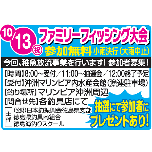 10/13(月)ファミリーフィッシング大会を開催!