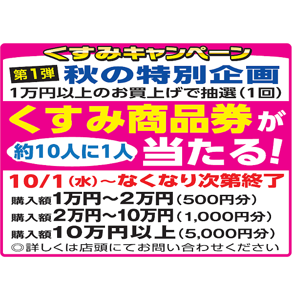 ① くすみ500円商品券を先着50名様プレゼント